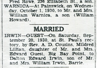 Warnica Birth Announcement & Irwin-Guest Wedding Announcement