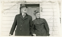 Photo of John and Louise (née Nixon) Barclay standing in front of a door to their home, located in Barclay in Innisfil.