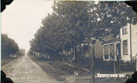 Photo taken on Cookstown's Main Street looking east from the railway tracks on an unknown date. The image shows a dirt,