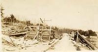 Photo of John Boyes II, road foreman, clearing snow with two teams of horses in front of the Churchill Presbyterian , IHS2669