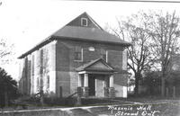 Exterior photo of the Masonic Hall in Stroud, which was built in 1923. The two-storey building is rectangular in shape, IHS3922