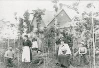 John Thompson and his three sons, Harry, Fred, Wilson, among maple trees (names of the women in the photograph are, IHS 4383