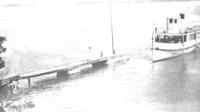 Photo of a train stationed in front of the Belle Ewart Ice Company storage house, which would have been loaded with, IHS307