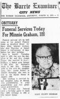 Newspaper clipping from Barrie Examiner re funeral services for Mary Ellen Graham - 100 years old, IHS3015