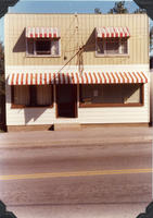 Photo of the exterior of Mr. and Mrs. Jim and Martha Currie's home and barber shop. The building was previously home to,