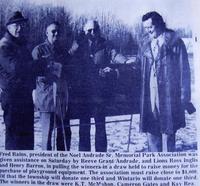 Scan from a newspaper of Reeve Grant Andrade pulling the names of lucky winners from the Innisfil Lions Draw Drum on 7, IHS4192