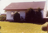 Photo of the exterior of the home of Mr. and Mrs. D.J. Coburn in Cookstown. The house is small and rectangular with a,