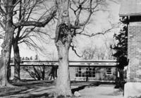Photo from 1950 of three young eighth grade girls standing outside of Killyleagh School, S.S. #6. Pictured from left to, IHS678