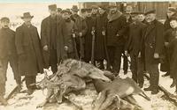 Photo showing teams of horses and men cutting down the hill in Churchill on Highway 11, now Yonge Street, north of where, IHS2671