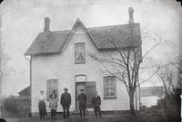 Standing in front of the house, left to right are Margaret Neilly, Alzada Neilly, Mr. George Neilly, Donald Barnes, and,