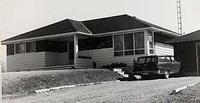 Photo of Bruce Wice, an Innisfil School Board Trustee, on horseback in front of the newly built Sunnybrae School. Wice, IHS 4461