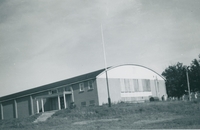 Photograph of Alcona Beach Public School while under construction in 1954. A two room building, with no landscaping, 4512