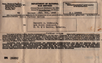 Correspondence from the Department of National War Services addressed to Mr. Kenneth R. McDonald, advising McDonald was