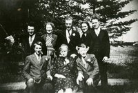 Portrait of members of the Fildey family. Pictured from left to right, back row: Wilfred, Margaret, George Sr., Clara,