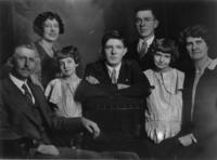 Black and white image of a family portrait. Three members of the family are standing, while four are seated. The image, IHS2260