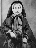 A studio portrait of Ann Jane McCullough, taken around 1860. Her hair is tied up, and she appears to be wearing a bonnet, IHS1255s