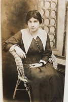 Undated photo of Emma Cooke as a young woman. She is wearing a high-necked dress with puffed shoulders and a bow-shaped