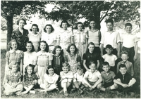 Undated class photo from Cherry Creek School, S.S. #3, with teacher Marion Bell [back row, left]. Most students are