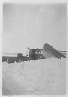 Undated black and white photo of a snowplow in Innisfil Township. Only the top of the equipment is visible behind a very