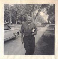 Photo of Joan McLean's father, Arthur James Holder Kidd, in on King St. South in Cookstown, 1972.,