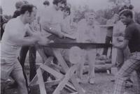 Log sawing contest at Innisfil Township Park, 1976., IHS3383-55A