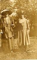 Photograph of Mrs. Ellen Finlay (née Ormsby, of Orillia) standing outdoors in a long coat and short brimmed hat. She is