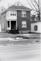 Photo of three men standing side-by-side outdoors in front of a brick home. The men pictured are Lemuel Hubbert and his, IHS1670