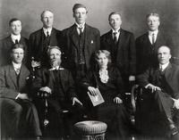 Front left to right: _______, May Allen, Milton Morton, Mildred Ayerst, Lucile Ayerst, Harvey King, Bessie Cunningham,, IHS2647