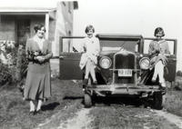 driveway--car--automobile--flowers--dress--fashion--women--family