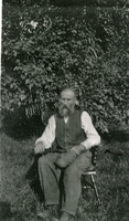 Portrait of a seated Robert Lazenby 1847-1919, husband of Mary Jane (Wray) Lazenby. Mr. Lazenby is seated in a wodden, IHS 4467