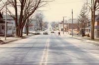 Photo taken on Church Street looking west towards Queens Street in Cookstown, likely in the 1970s. The Esso gas station, IHS559