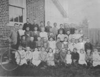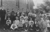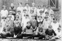 Back Row: Jack Slessor, George Kneeshaw, Harvey Donnelly, David Smith, Miss Kneeshaw, Wainwright Willet, Molly McEwen,,