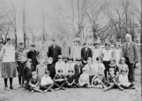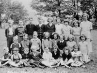 Back row (L to r):Teacher (unknown), Verral Matthews, Lambert Wilson, Theodore Kell, Willard Stewart, Betty Harrison,, IHS1358