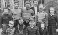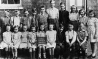 Back row (l to r): Ethel Todd (teacher) Jean Spence,Helen Sawyer, Ken Matchett, Stan Todd, Norman Priestly, Ron Zielke,, IHS1324