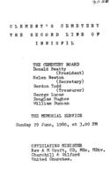 Scan of the front page of a Memorial Service at Clement's Cemetery on the Second Line of Innisfil. The officiating, IHS3020
