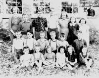 Back row (l to r): Ethel Todd (teacher), Bob Hughes, Keith Sinclair, Sinclair Nevils, Mary Nevils, Sylvia Kell, Margaret, IHS1319