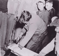 School Fair - sawing contest from pg. 116 of Stroud Tweedsmuir History Vol.II. All schools in Innisfil - inter-school, IHS3382-122A