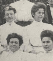 From left standing: unknown, Annie Rothwell (Mrs. Robert Boyes), [active in Barrie Museum], unknown, Myrtle Ralston., IHS960