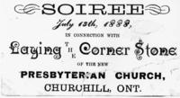 Poster - re a Soiree on July 13, 1888 in connection with laying the cornerstone of the New Presbyterian Church,, IHS1313