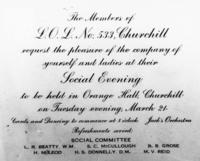 Invitaion: By Churchill Social Club to Dance in Orange Hall. Dance and Refreshments - $1.00 per couple., IHS1999