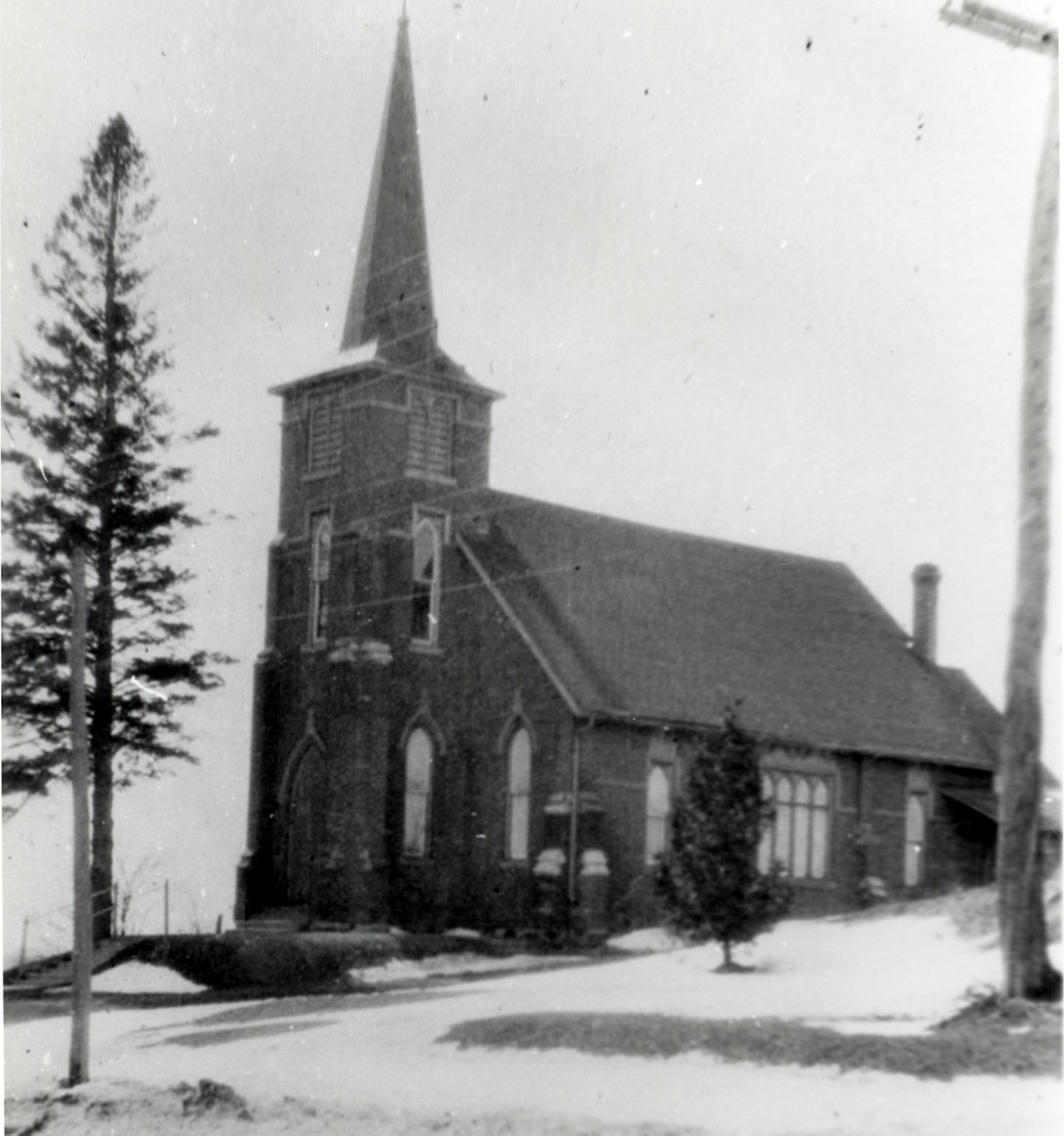 The exterior of St. Peter's Anglican Church in Churchill in the early 20th century.