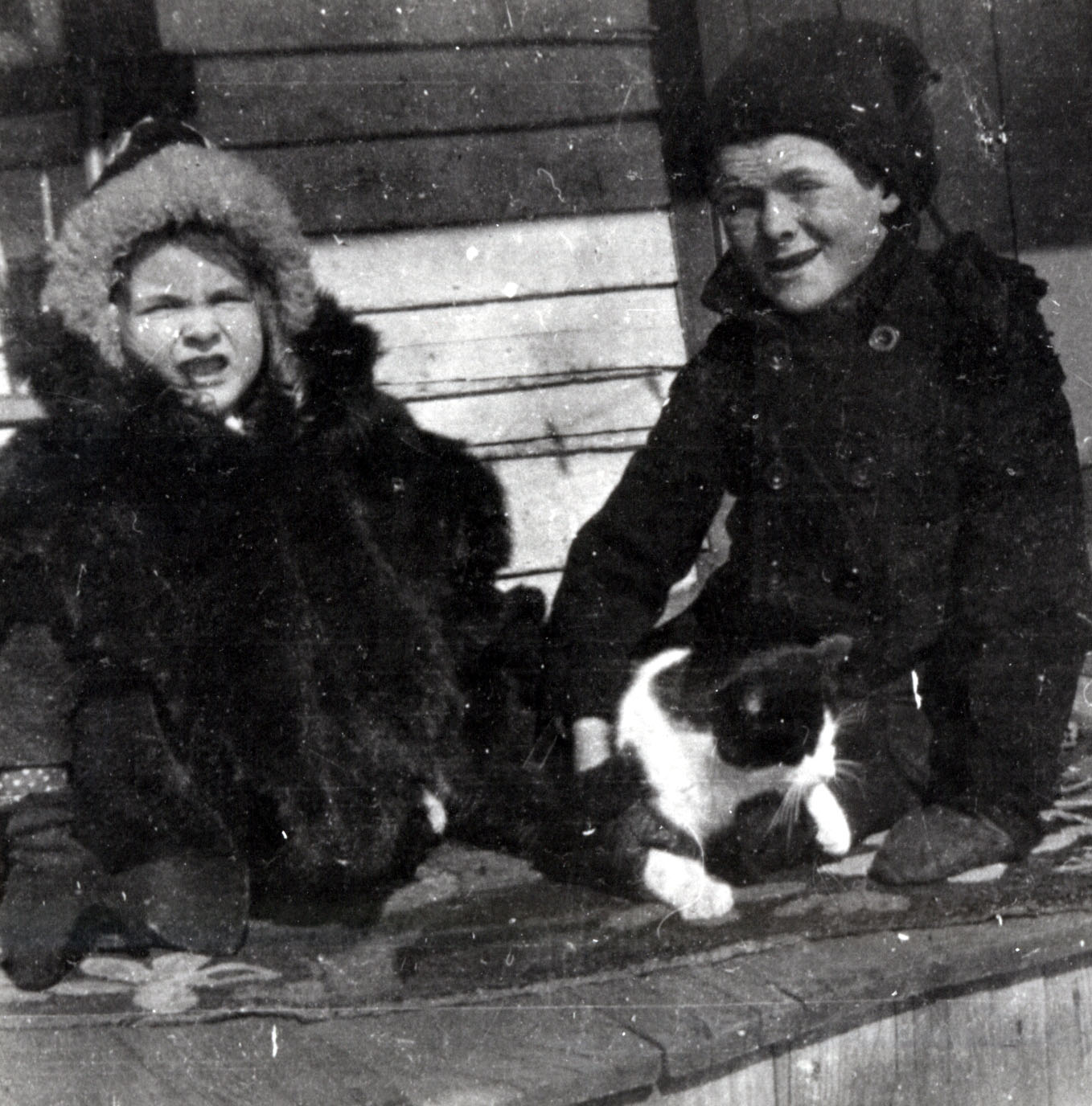 Photograph of Neville and Genevieve Jamieson with their cat as children.