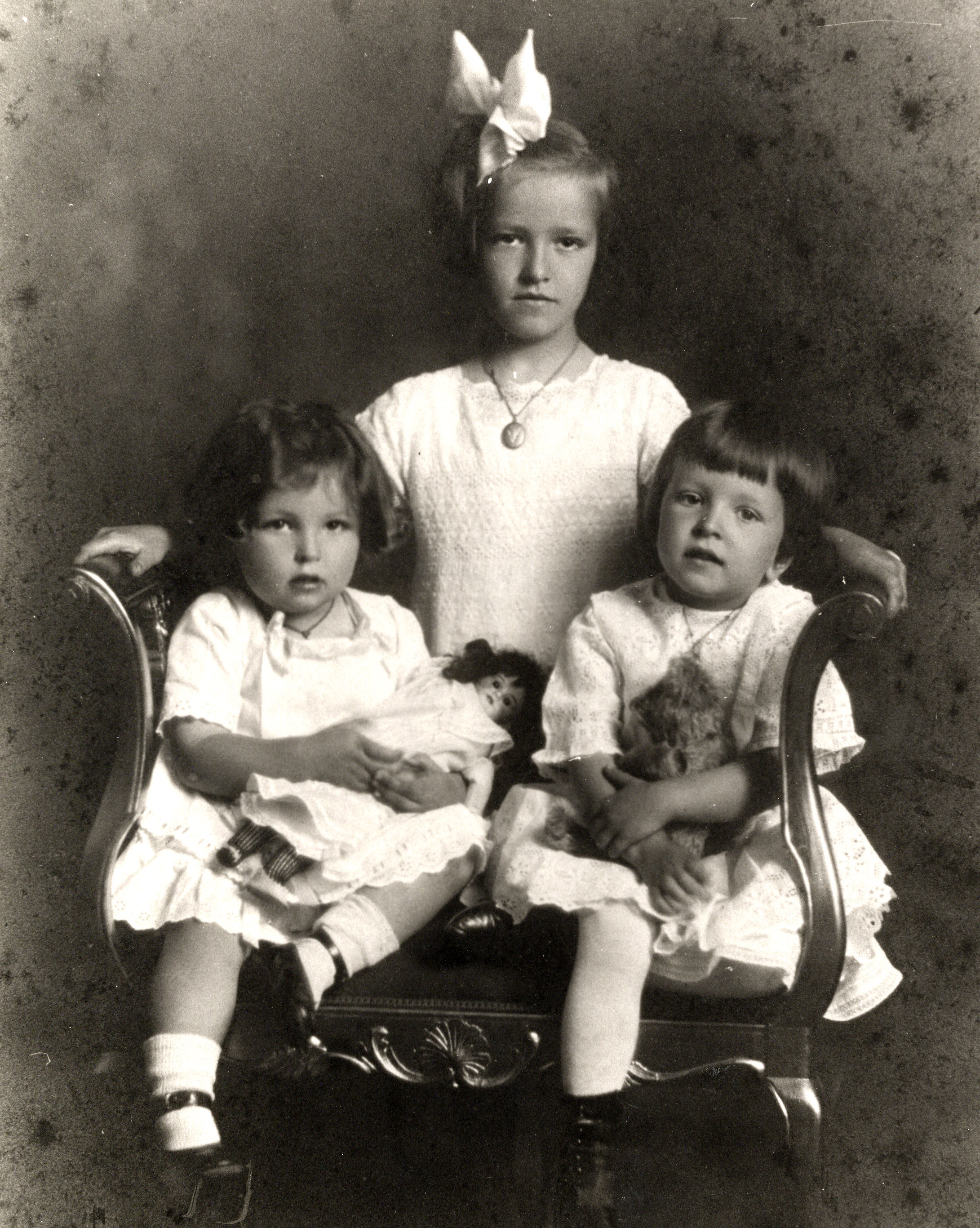 Pictured from left to right: Edith, Betty, and Winnifred Cunningham. Betty later married Percy Clarkson of Toronto, Edith married Morey Hall of Newmarket and Keswick, and Winnifred married Harry Hill of Barrie.