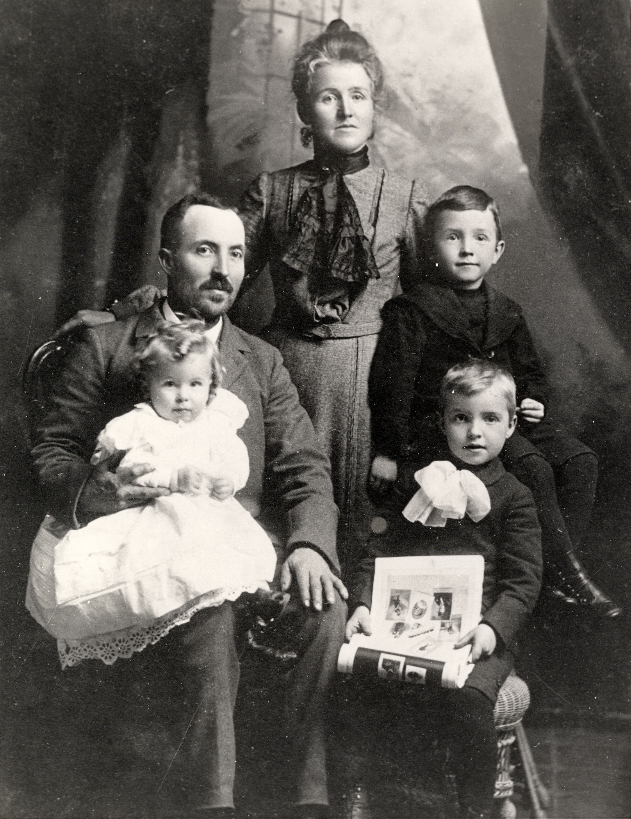 Portrait of John Cowan and Maidie Cowan (née Barclay) and their children Frank (on John's knee), Bruce (front right) and Donald (rear right).