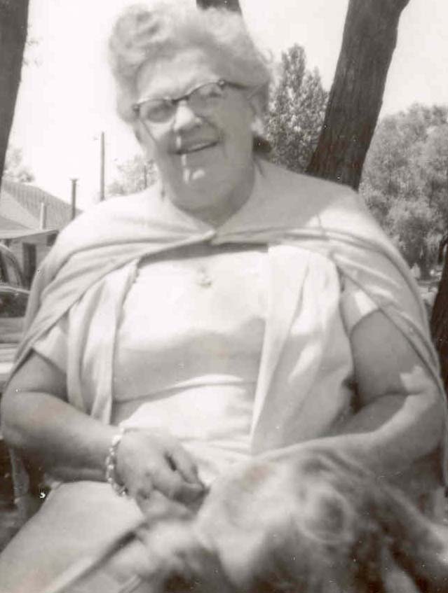 Photo of Mrs. Eva Patton, the President of the Cookstown Women's Institute 1953-1956; Membership of 63; Programmes consisted of Demonstrations and special speakers; two bus trips taken yearly; catered to banquets and weddings; entertained at Simcoe Manor once yearly taking birthday presents and treats of ice cream and candy; new electric stove put in kitchen of town hall; at end of term bank balance of $500.00 - used to decorate the town hall where monthly meetings were held; and three members were made Life Members in the year 1953. Mrs. Patton is now a Life Member.