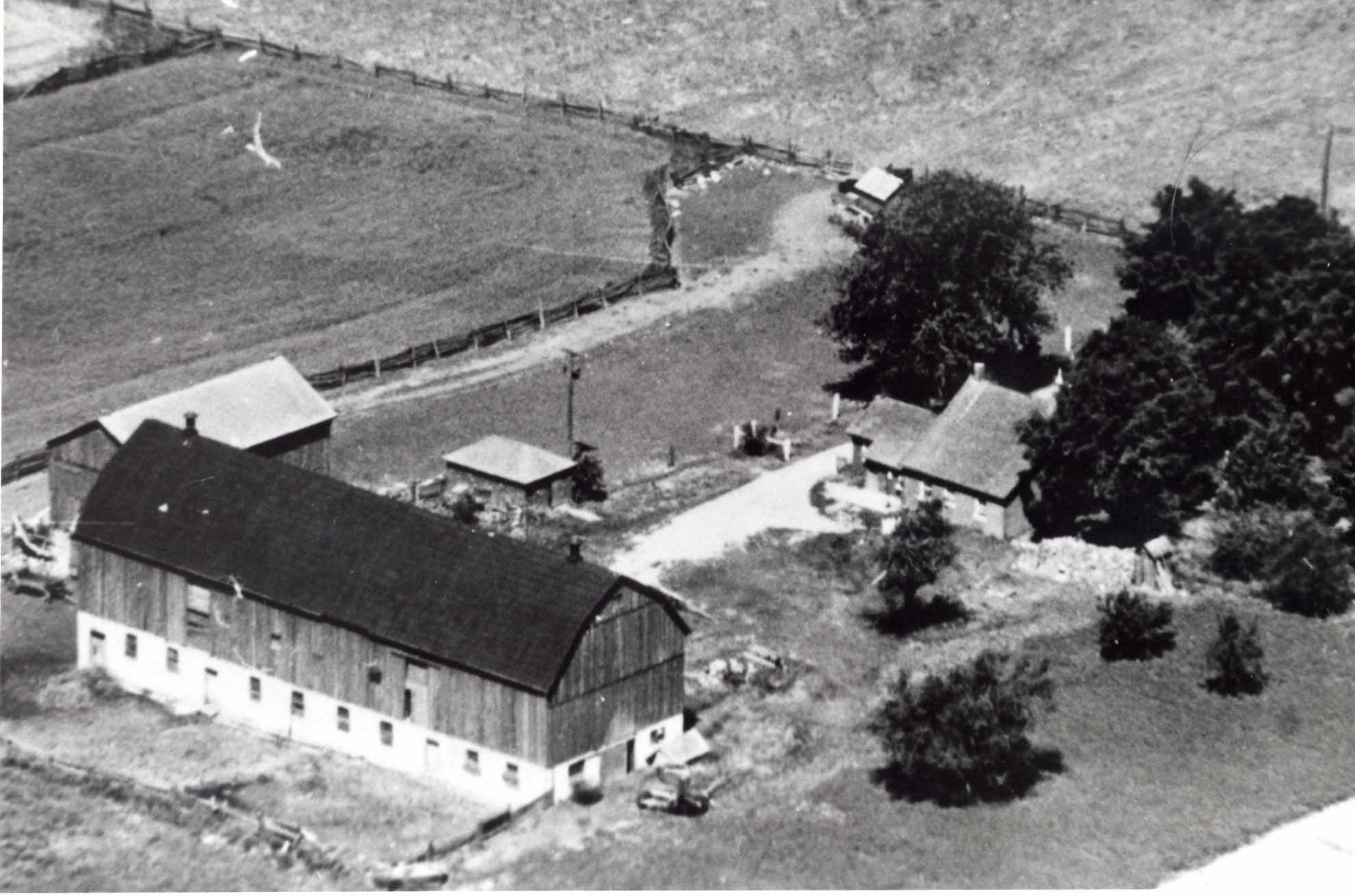 Aerial view of the Peacock homestead in Stroud.