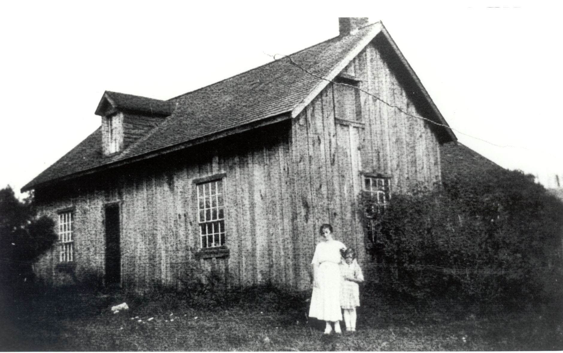 Photo of Bertha Atkinson (later Stewart, 1895 - 1992) and her niece Verna Murray in front of the Baxter family home.