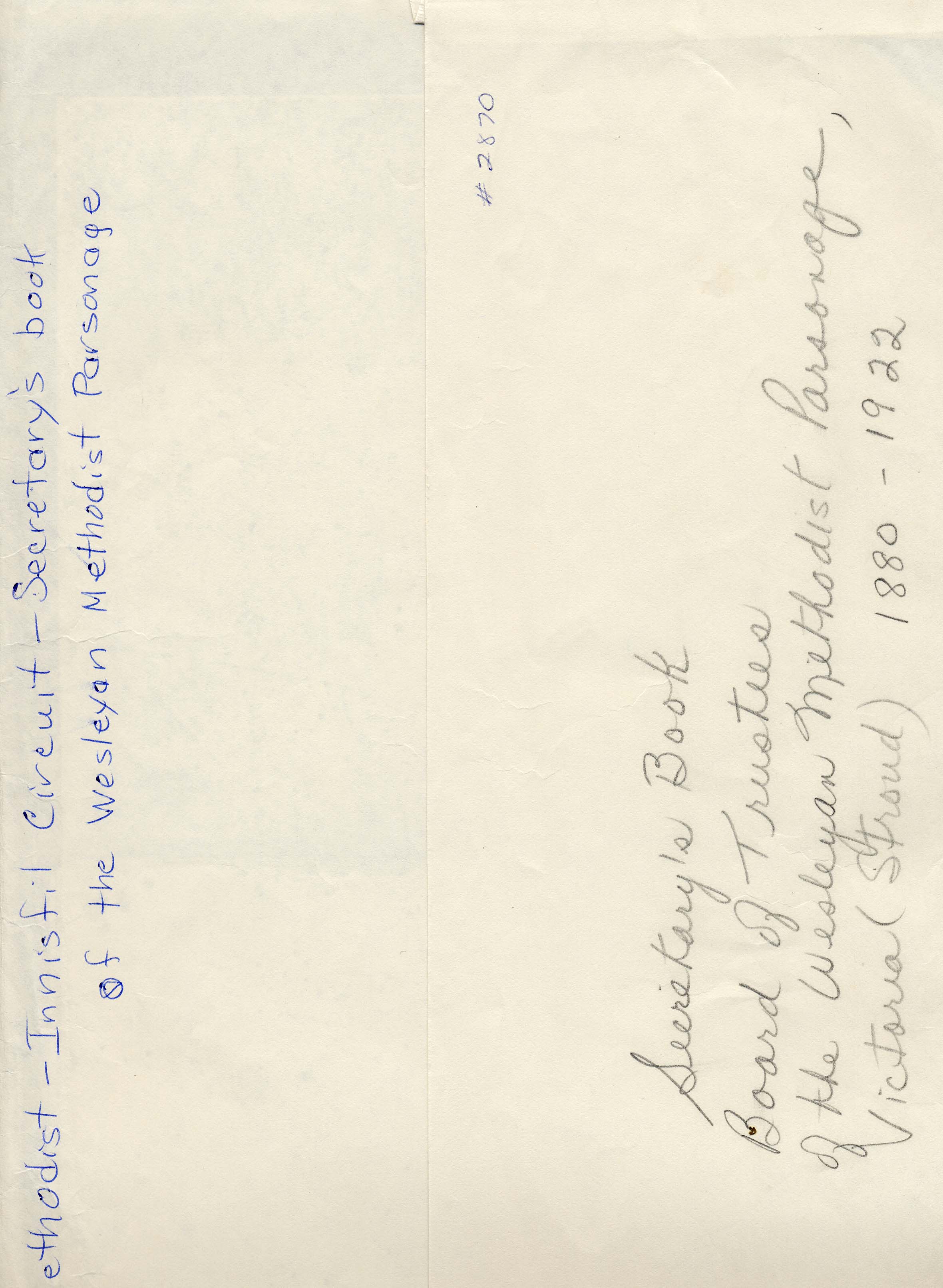 Secretary's Book, Board of Trustees of the Wesleyan Methodist Parsonage (Victoria) Stroud - 1880 - 1922