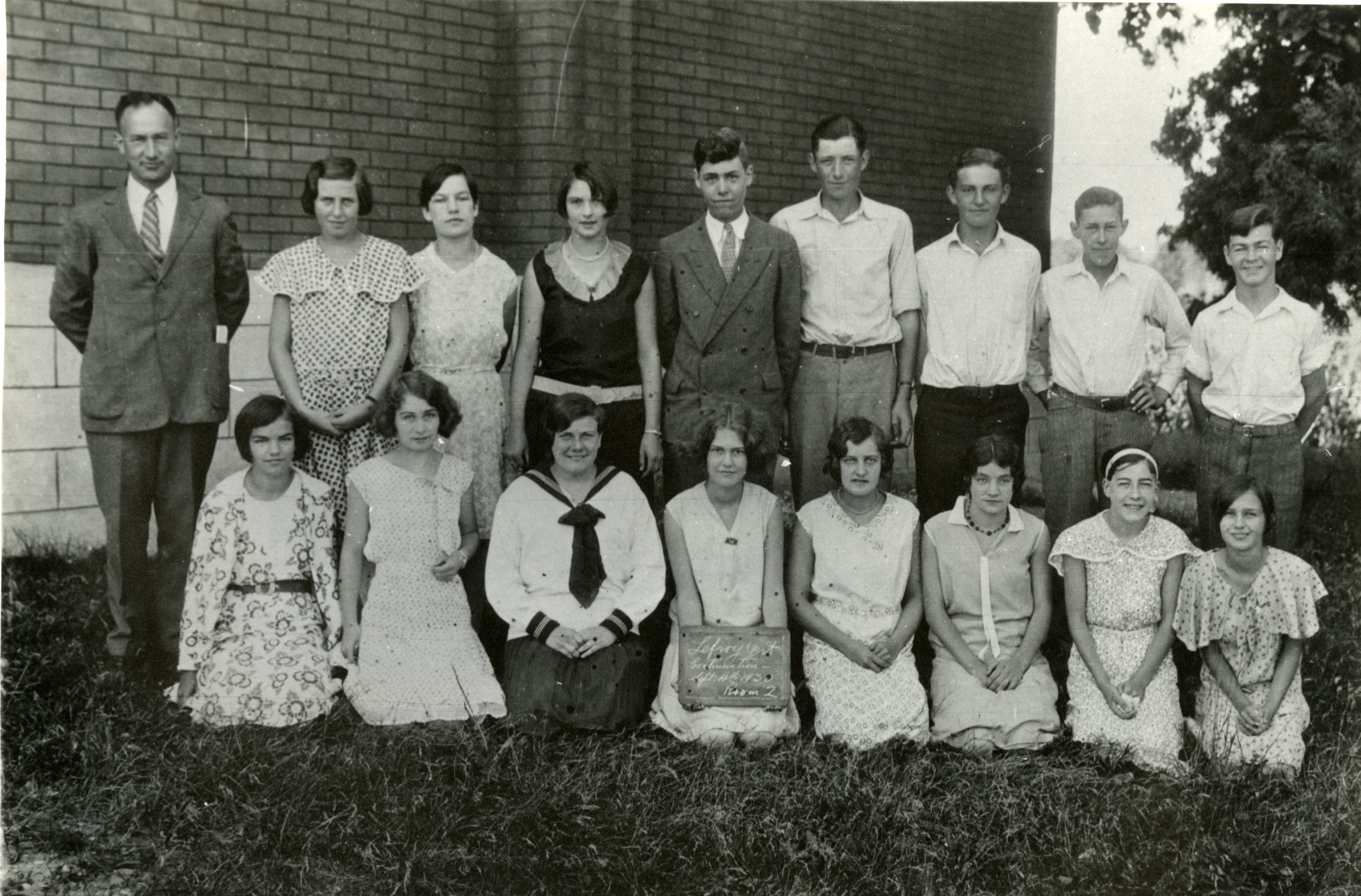 Back row: L to R: Mr. Hagar Whitney (teacher) Margaret Stephens, Evelyn Gibbons, Mildred Everton, _________, Clarence Stewart,Claude Nesbitt, Lloyd Hughes Second row: L to R: Kathleen Houston, Doris Baker, Bertha Stewart, Jean McKeown, Sarah Wilson, Beatrice Campbell or Margaret Grose, Dorothy Allan, Jean Hughes Further information is available at the Document Centre at Knock