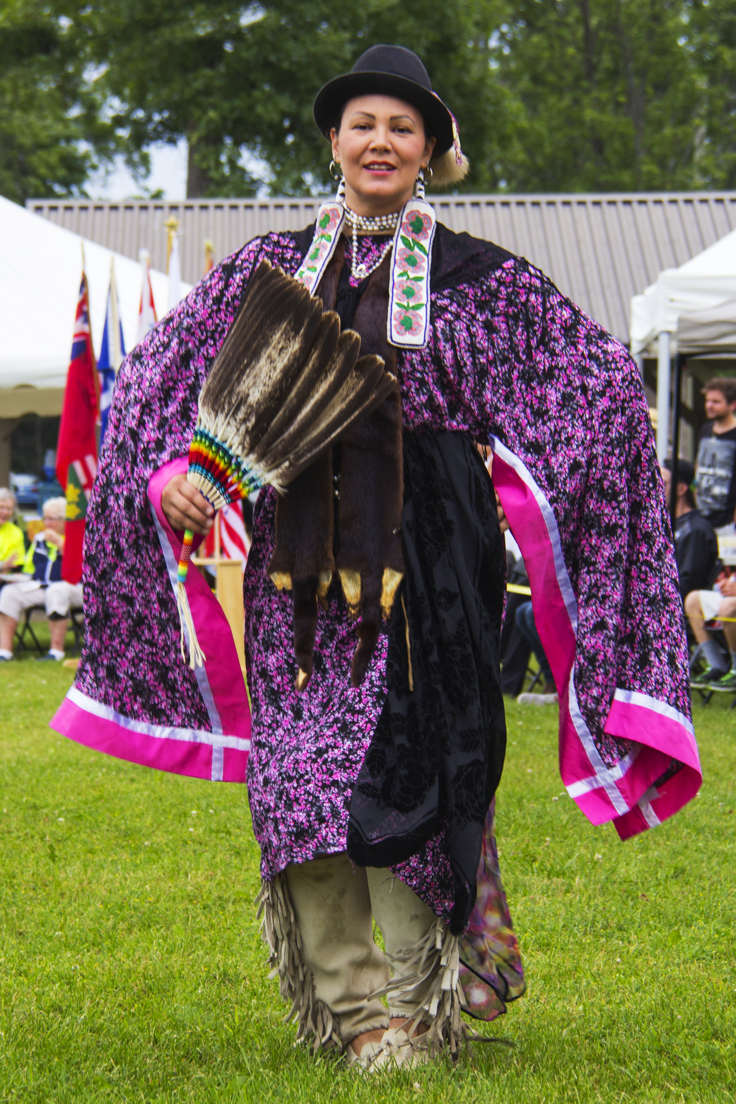 Image of a female dancer in black and pink regalia at the 2017 Celebrate Lake Simcoe Pow Wow at Innisfil Beach Park on 22 July 2017. Photograph taken by Gordon Wright.